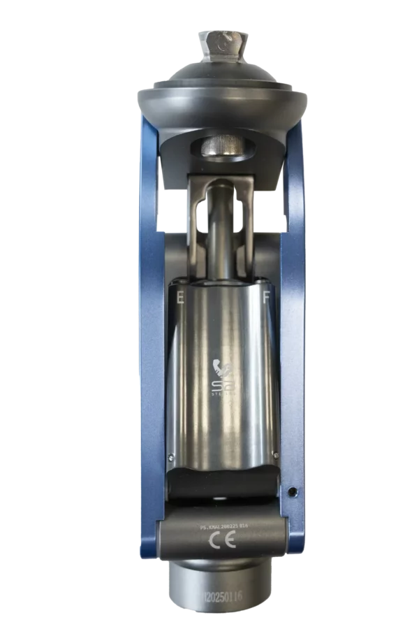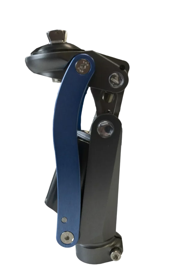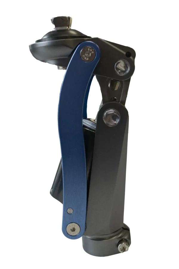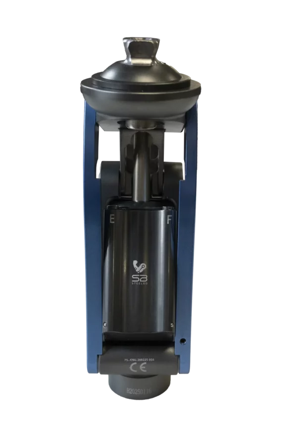 P5.KM — Pneumatic knee joint with geometric locknnnnP5.KM is a pneumatic knee joint with geometric lock, designed for lower limb prostheses. Equipped with an efficient pneumatic actuator for smooth adjustment of flexion and extension, allowing the joint to be tailored to individual user needs. Construction aluminum i stali nierdzewnej ensures durability and reliability, and the resistance adjustment system increases comfort and natural gait. Product for users with activity level 2-3 and body weight up to 125 kg.nnnn