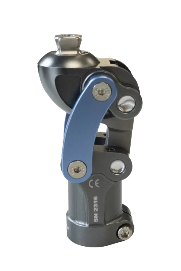 M4.ZZ to mechaniczny, wodoodporny staw kolanowy z zamkiem, przeznaczony do protez kończyn dolnych. Wykonany ze stopu magnezu i aluminium, łączy niską masę z wysoką wytrzymałością. Zastosowanie łożysk igiełkowych zapewnia płynny ruch oraz długą żywotność. Mechanizm blokady umożliwia stabilne utrzymanie kolana w pozycji wyprostowanej, zwiększając bezpieczeństwo podczas stania i chodzenia. Produkt przeznaczony dla użytkowników o poziomie aktywności 1–3 i masie ciała do 125 kg.