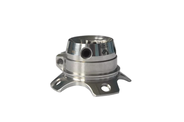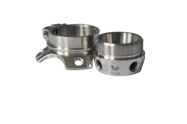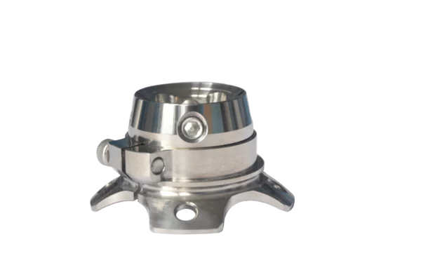 Adapter do laminacji leja, wykonany z tytanu, przeznaczony do montażu w leju, zakończony adapterem żeńskim.