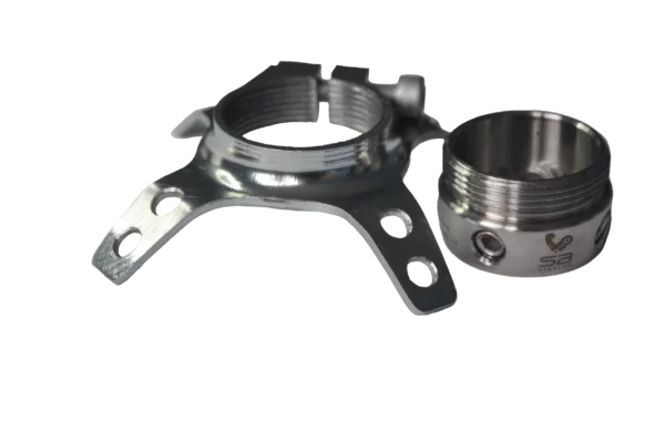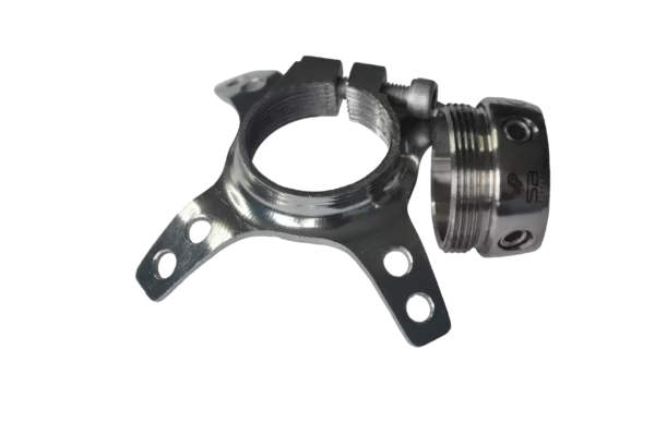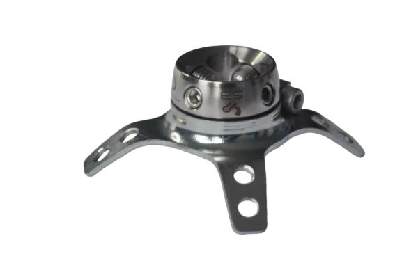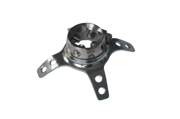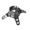 Adapter do laminacji leja z czterema elementami mocującymi średniej długości, wykonany ze stali nierdzewnej i stali powlekanej, przeznaczony do montażu bezpośredniego w leju, ze złączem żeńskim regulowanym.