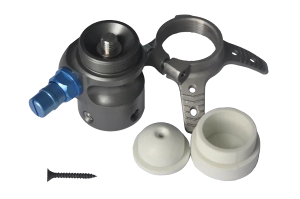 Замкова система, з одного боку — гніздовий роз’єм, з іншого — різьба для з’єднання. До комплекту входить адаптер з довгими монтажними кронштейнами